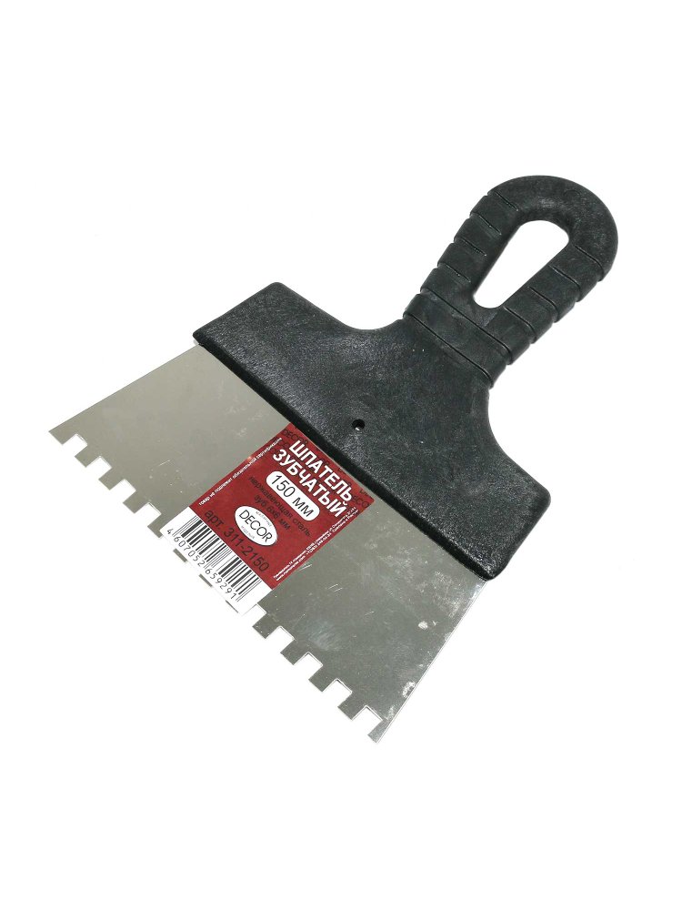 Удобный и прочный инструмент для профессиональных и бытовых работ с плиточным клеем, штукатуркой и другими смесями. Идеален для нанесения и распределения растворов по поверхности благодаря оптимальному формату и зубу 6x6 мм.