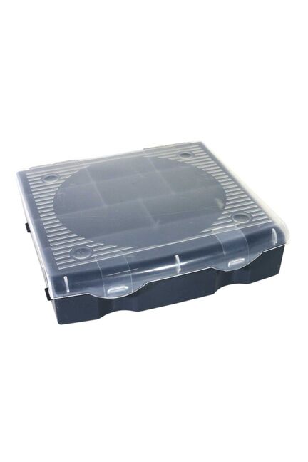 Прочный пластиковый контейнер 170×160×50 мм для хранения и сортировки крепежа и мелочей. Компактный, с надёжной крышкой и секциями.