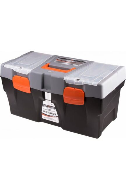 Вместительный ящик 24'' (590x300x300 мм), с прочным корпусом, металлическими замками и органайзером — для надежного хранения и переноски инструментов.