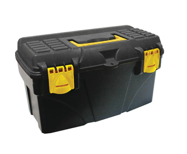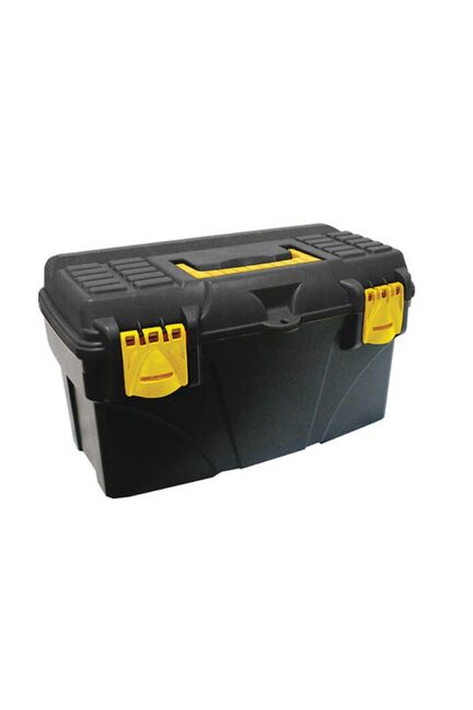Ящик для хранения инструмента и других хозяйственных нужд. Классическая форма, внутренний лоток для эффективной организации хранения. Блоки для мелочей на крышке идеально подходят для размещения мелких скобяных изделий. Надежные замки позволят безопасно переносить ящик с большой загрузкой. Отверстие для крепления навесного замка позволит защитить инструмент при транспортировке. Прочный ящик 19" (430х240х250 мм) с отсеком для мелочей и вставкой. Удобное хранение и переноска инструментов дома и на работе.