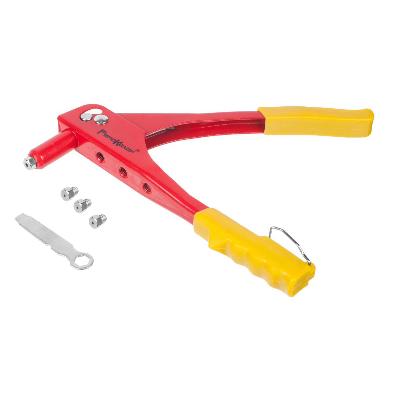 Предназначен для соединения листовых материалов с помощью вытяжных заклепок. Комплектация: заклепочник, сменные насадки 2,4 мм, 3,2 мм, 4,0 мм, 4,8 мм, ключ для смены насадок. Материал корпуса сталь, рукоятки с пластиковыми чехлами обеспечивают удобство в работе. Механический заклепочник 250 мм для заклепок 2,4-4,8 мм, эргономичная рукоятка, стальной корпус, надёжен, удобен в работе, подходит для разных задач.