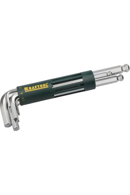 Ключи Kraftool предназначены для профессионального применения в машиностроении, автомобильной промышленности и т.д. Выдерживают высокие нагрузки, имеют длительный срок службы. Надёжный 8‑предметный набор длинных имбусовых ключей из стали, размеры 1,5–8 мм, для точной, быстрой и удобной работы в труднодоступных местах.