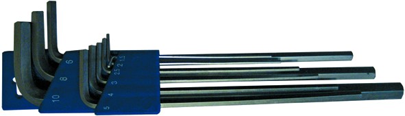 Хромованадиевая сталь, оксидированное покрытие, пластиковый держатель. В набор входят размеры: Удлиненные 1,5 мм, 2 мм, 2,5 мм, 3 мм, 4 мм, 5 мм, 6 мм, 8 мм, 10 мм. Предназначен для винтов с внутренними гранями шестигранника соединения типа TORX. Набор из 9 удлинённых прочных имбусовых ключей 1,5–10 мм для сборки, ремонта и монтажа. Удобный держатель, долговечный сплав.