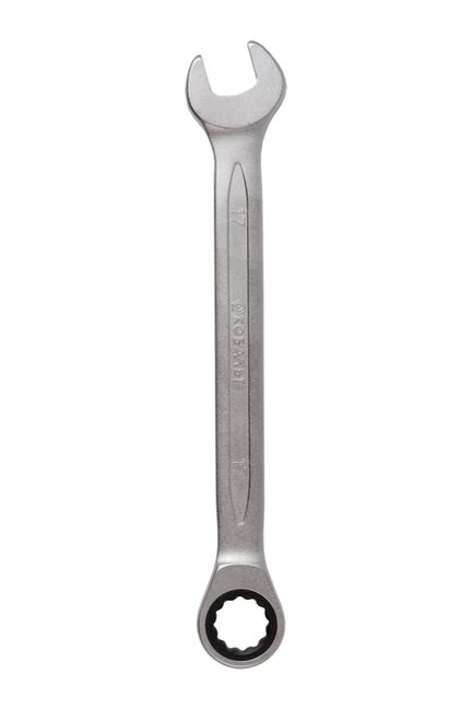 Два ключа в одном: открытый и накидной трещоточный 17 мм, прочная сталь, быстрая работа с резьбовыми соединениями, удобство и долговечность.