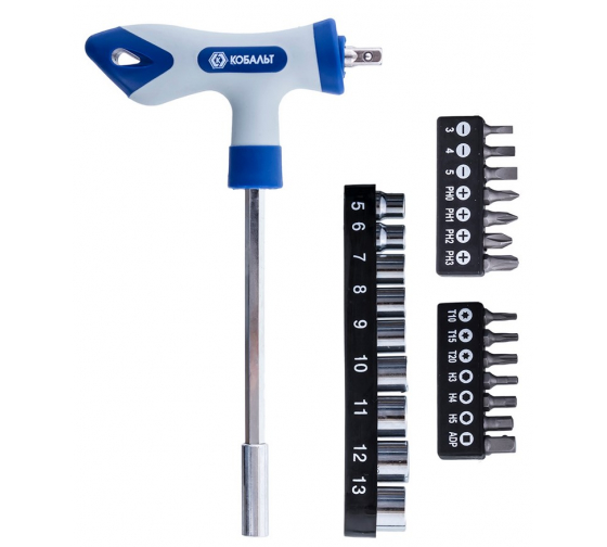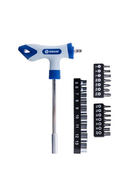 Набор 24 шт,Отвертка КОБАЛЬТ Т-образная с набором бит и торц. головок 1/4"
