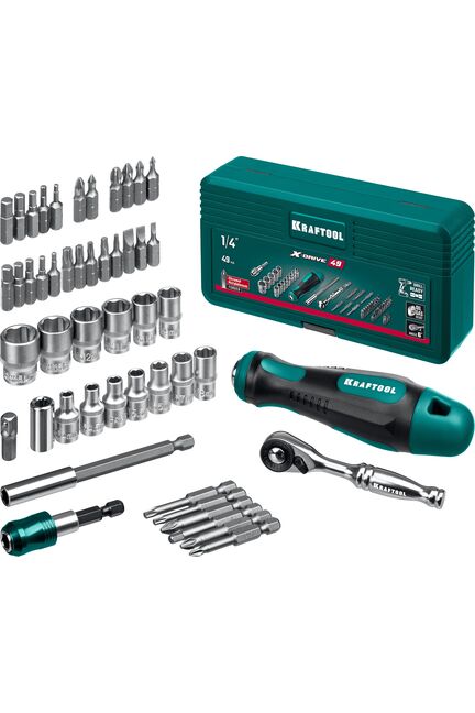 Набор бит и головок с битодержателем и трещоткой 49 пр. 25816 X-Drive KRAFTOOL