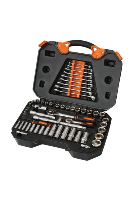 Набор инструмента Кратон TS-04 предназначается для выполнения работ по авторемонту. Комплект отличается многофункциональностью и подходит для выполнения широкого спектра работ. Специальные ложементы позволяют компактно и удобно размещать все комплектующие. Универсальный набор: 58 инструментов из хром-ванадиевой стали, трещотки 1/2" и 1/4", литой кейс. Для ремонта авто и бытовой техники.