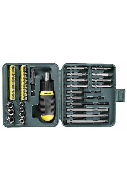Набор: Отвертка реверсивная с битами, торц. головками и сверлами, KRAFTOOL, 43 предм.