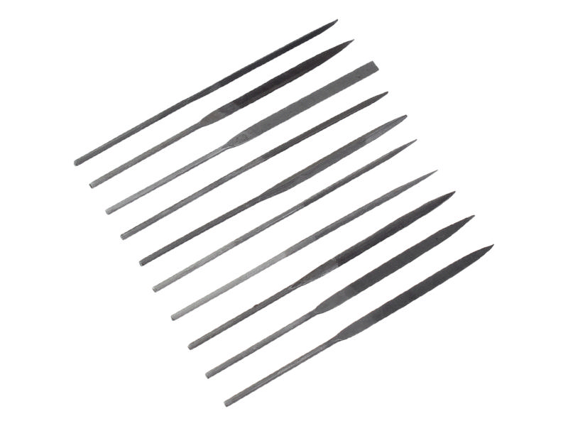 Набор надфилей, 10 предметов, 3x140 мм РемоКолор изготовлен из углеродистой стали У12, У13 с твердостью режущей части 60-65 HRc. Набор из 10 надфилей 3×140 мм для обработки металла, дерева, пластика. Прочные, разные формы, удобные ручки, универсальное применение.
