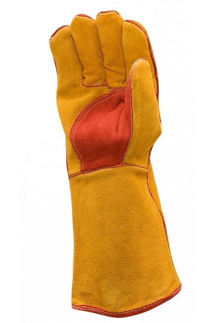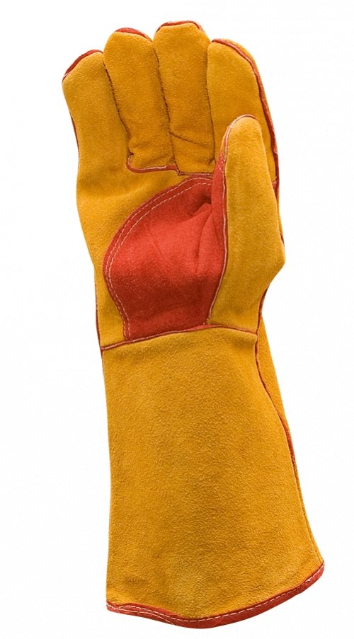 Усиленные спилковые краги: защита от порезов, искр и тепла, удобство работы, долговечность и яркая расцветка для максимальной безопасности.