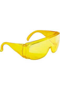 Предназначены для защиты глаз от механических воздействий твёрдых частиц, с механической прочностью F (низкоэнергетический удар 45 м/с 0,84 ДЖ). Линза изготовлена из ударопрочного поликарбоната, оптический класс 1, устойчива к истиранию и царапинам. Имеют боковую и верхнюю защиту с широким панорамным обзором. Жёлтый цвет линзы повышает контрастность, что хорошо для использования в условиях плохой видимости (туман, дождь, снег, недостаточная освещенность). Рекомендуется применять при проведении работ связаных с риском получения травм глаз (на станках и устройствах для механической обработки твёрдых материалов, при слесарных работах). Возможно использование с корригирующими очками. Жёлтые защитные очки для работы: защищают от пыли и стружки, увеличивают контраст, удобные и не запотевают. Отличный выбор для стройки и ремонта.