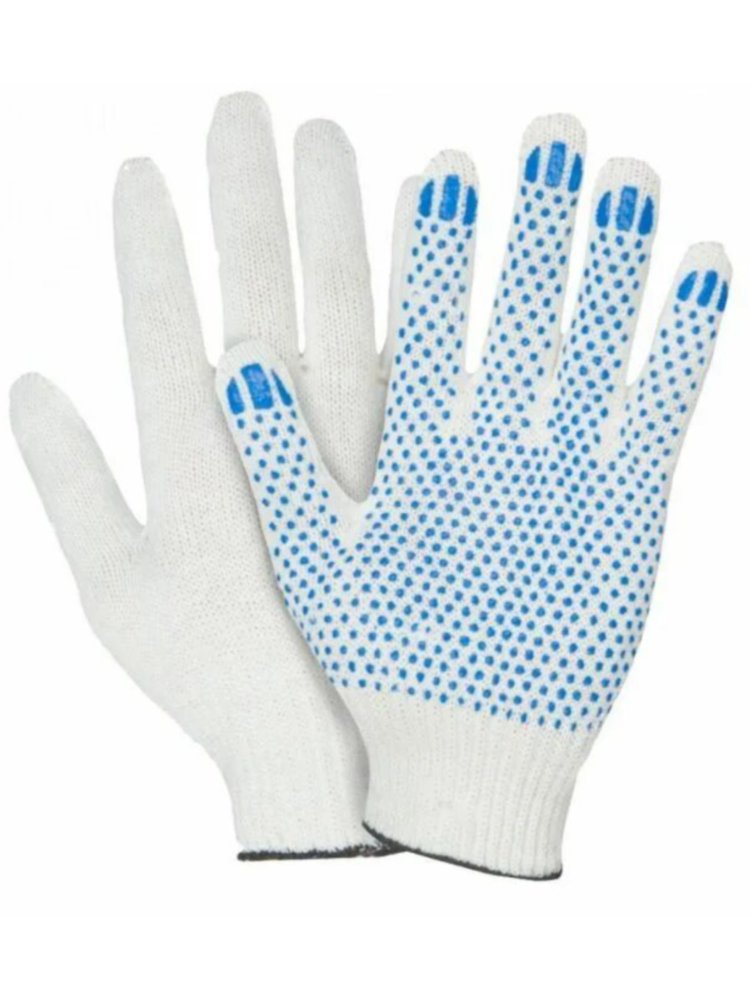 Выберите максимальную защиту и комфорт для ваших рук в работе! Перчатки хб с ПВХ точка 10кл./6нит. белые созданы для надежного сцепления и сохранения чувствительности при выполнении строительно-отделочных, ремонтных и погрузочных работ, а также для садовых и хозяйственных задач.