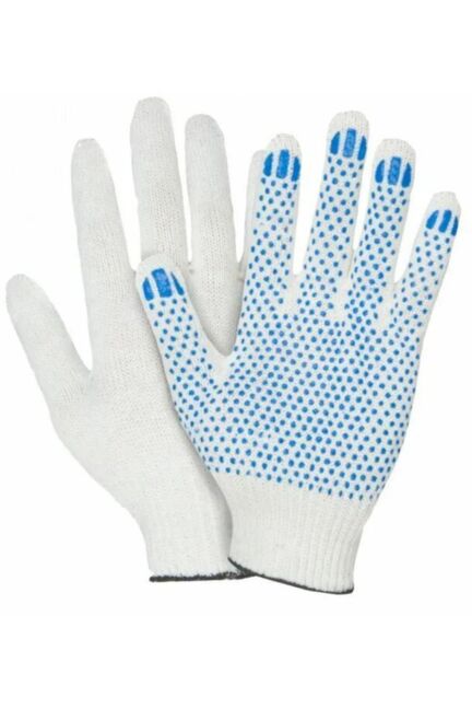 Перчатки хб с ПВХ точка 10кл./6нит. белые