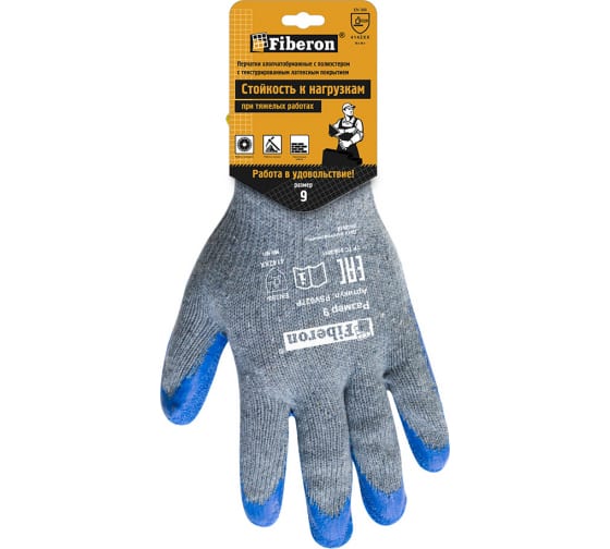 Перчатки полиэстер. латексное покрытие "Стойкость к нагрузкам при работе", Fiberon