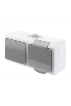 Высота: 5 см; Глубина: 4 см; Ширина: 26 см; Гарантия 2 года; Количество выключателей: 1; Количество клавиш:2; Количество постов:2; Количество розеток:2. Блок с розеткой и 2-клавишным выключателем 10А IP54 для влажных зон. Надёжная защита, удобство управления и долговечность.