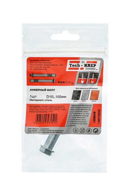 Анкерный болт 10х100 (1 шт) - пакет Tech-Krep