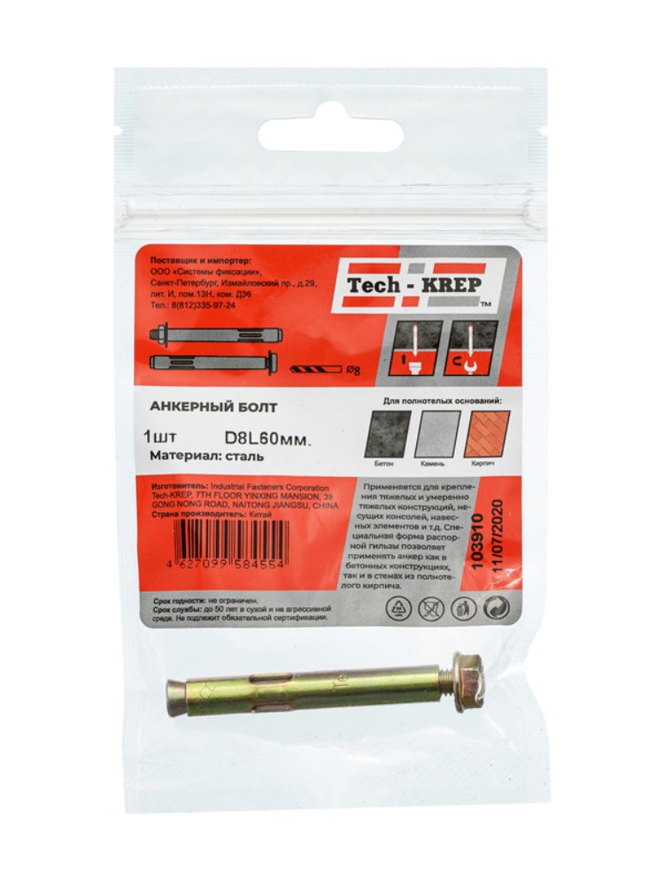 Анкерный болт 8х60 (1 шт) - пакет Tech-Krep