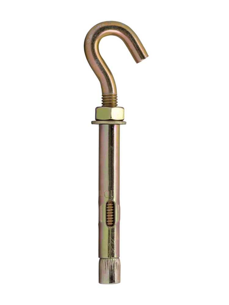 Анкер с крюком М8, 10×50 мм, оцинкованная сталь. Для надежного крепления тяжёлых конструкций в бетон, кирпич и камень.