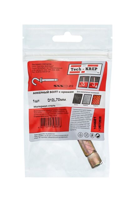 Анкерный болт с крюком 12х70 (1 шт) - пакет Tech-Krep в Комсомольск-на-Амуре