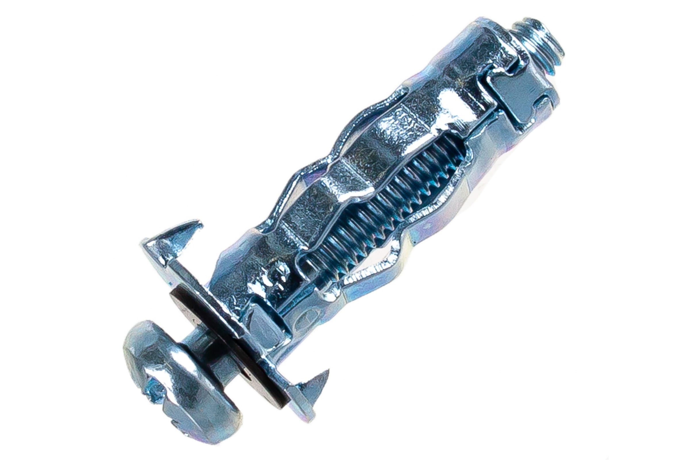 Используется для сквозного монтажа в листовых основаниях-ГКЛ, ДСП, волокнистый бетон, пустотелые материалы с небольшим размером пустот. Монтаж производится при помощи отвертки или специального инструмента. Дюбель Молли 4×38 мм для надёжного крепления в гипсокартоне, листах и пустотелых стенах. Оцинкованная сталь, нагрузка до 20 кг, упаковка 100/1000 шт.