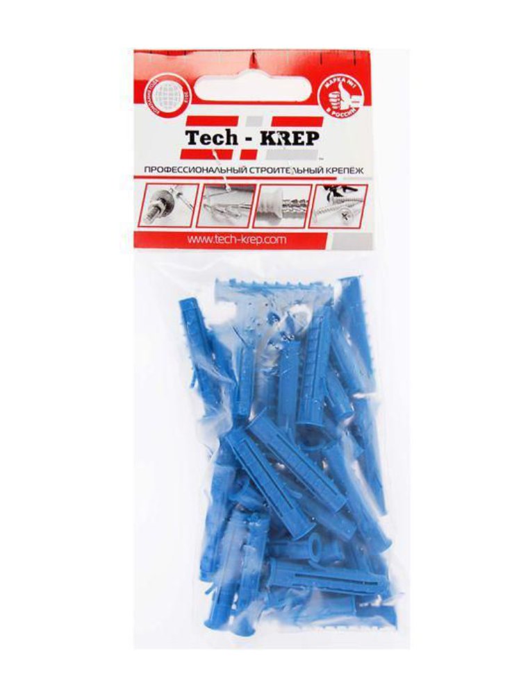 Дюбель распорный 6х25 мм из полипропилена с шипами и усами для надежного крепления в бетоне и кирпиче. Упаковка 60 шт. от Tech-Krep.
