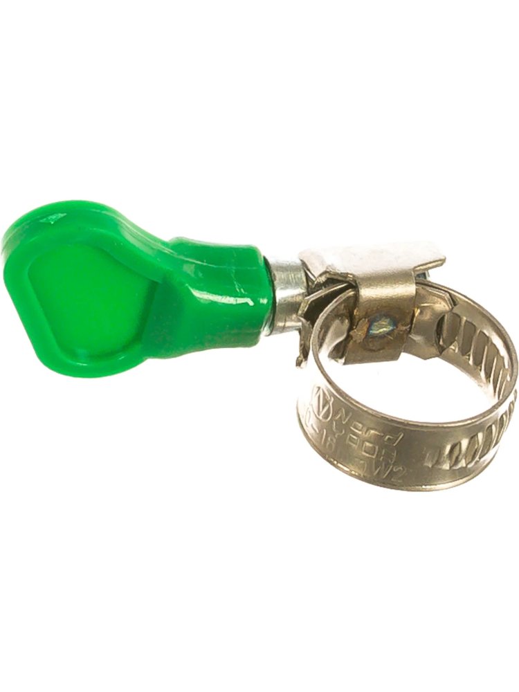 Хомут из нержавеющей стали диаметром 10–16 мм с удобной бабочкой для быстрого монтажа. Надежная фиксация без инструментов.