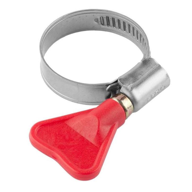 Обжимной хомут 8–12 мм из нержавеющей стали с бабочкой: антикоррозийное покрытие, простая установка вручную, прочная и герметичная фиксация.
