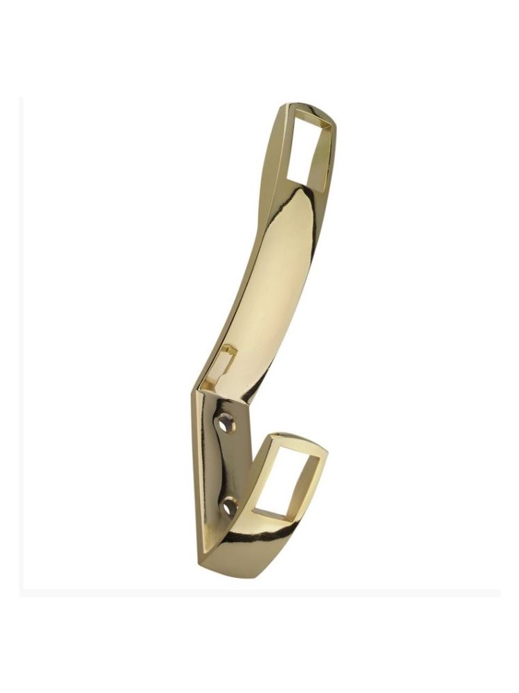 Двухрожковый мебельный крючок цвета золото для аккуратного хранения одежды и аксессуаров, надёжный, универсальный, легко устанавливается.