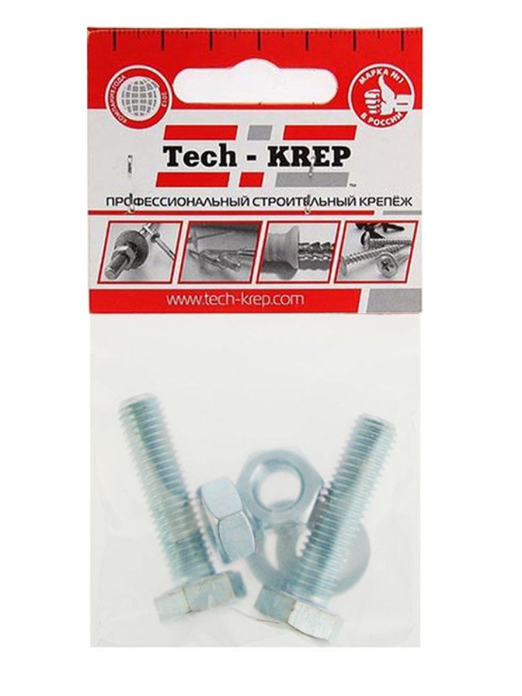 Комплект крепежа Tech-Krep: болт DIN933 М10х30 с шестигранной головкой, гайка и 2 шайбы. Оцинковка для защиты от коррозии, для надежного соединения.