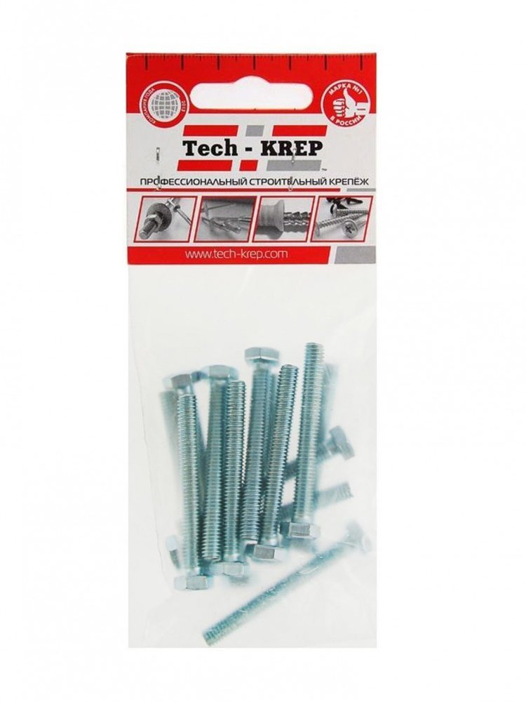 Болт DIN933 с шестигранной головкой оцинк. М6х60 (10 шт) - пакет Tech-Krep