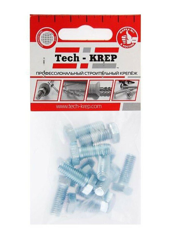 Болт DIN 933 с шестигранной головкой М8х20, оцинкованный, 12 шт. в упаковке Tech-Krep. Прочный, устойчивый к коррозии крепеж для надежных соединений.