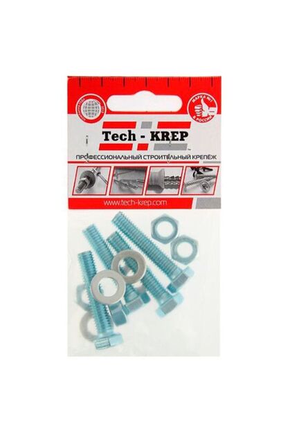 Болт DIN933 с шестигранной головкой оцинк. М8х60 + гайка + шайба (4 шт) - пакет Tech-Krep
