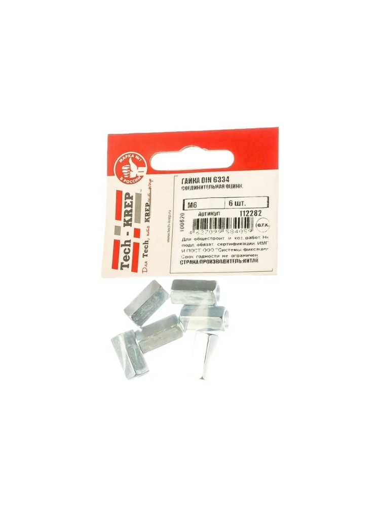 Гайка DIN6334 соединительная оцинк. М6 (6 шт) - пакет Tech-Krep