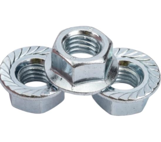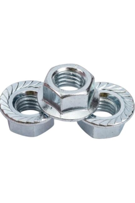 Усиленная оцинкованная гайка с фланцем М10, 18 шт — для надежных креплений, устойчива к коррозии, равномерно распределяет нагрузку.