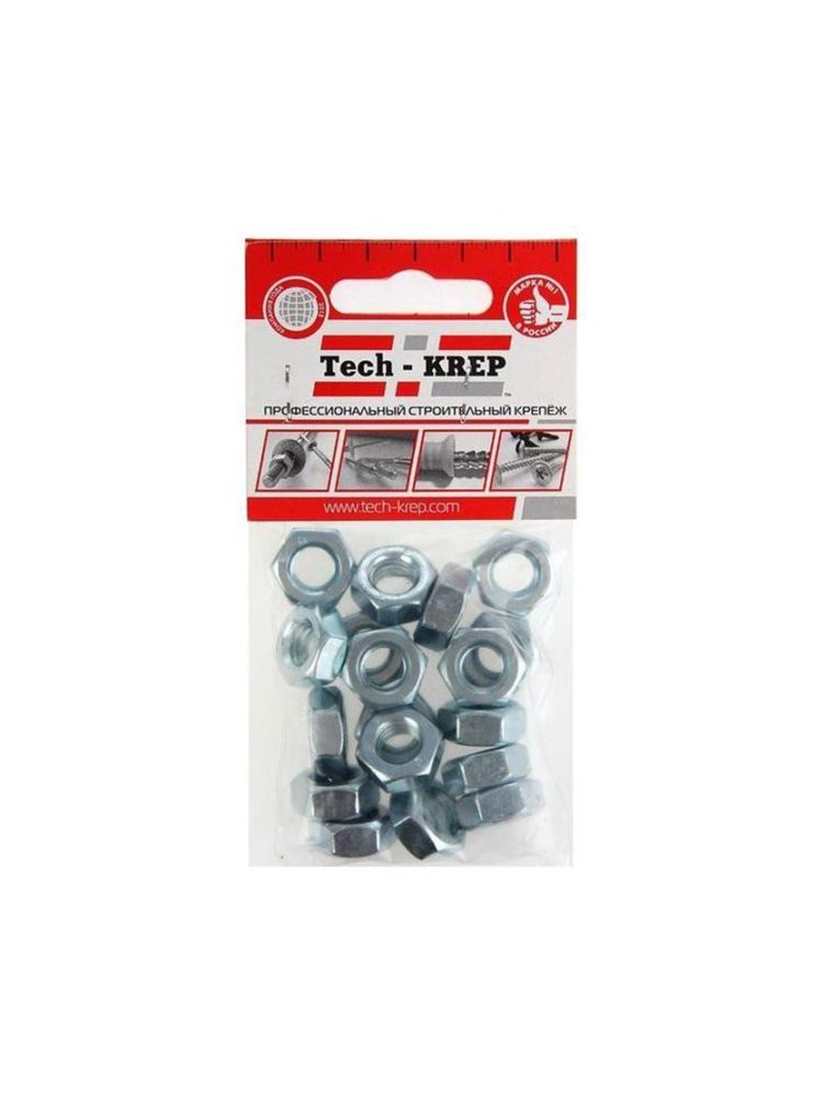 Гайка шестигранная оцинк. М10 DIN934 Tech-Krep (18 шт) – надежный крепеж из стали с антикоррозийным покрытием для строительства и ремонта.