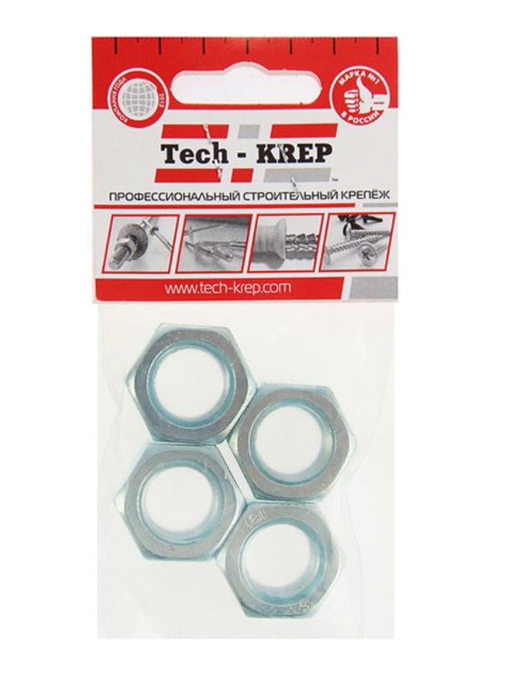 Шестигранная гайка DIN934 М18 с цинковым покрытием, 4 шт. в упаковке Tech-Krep. Прочная сталь, антикоррозийная защита, для надежных соединений.
