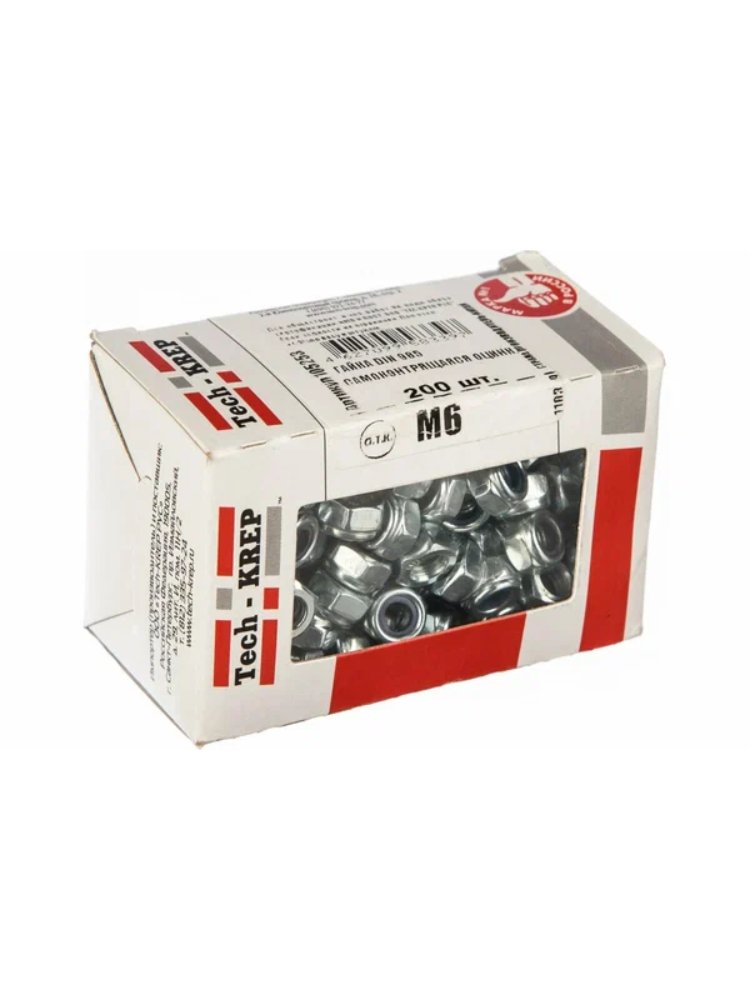 Гайка самоконтрящаяся DIN 985 М6 оцинкованная, 200 шт в коробке с окном от Tech-Krep. Надежный крепеж с защитой от вибраций и коррозии.