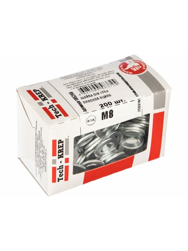 Шайба DIN125а плоская оцинк. М8 (200 шт) - коробка с ок. Tech-Krep