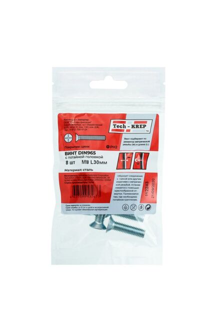 Винт DIN965 с потайной головкой оцинк. M8х30 (8 шт) - пакет Tech-Krep