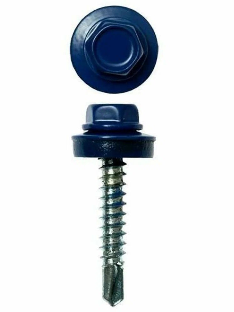 Идеальный выбор для быстрой, надежной фиксации кровельных материалов — прочные саморезы с шестигранной головкой и фланцем, окрашенные в ультрамарин позволяют не только обеспечить герметичность, но и подчеркнуть эстетику конструкции. Благодаря полимерному покрытию и оцинкованной стали крепеж устойчив к коррозии и ультрафиолету, что гарантирует долговечность соединений даже при интенсивной эксплуатации на открытом воздухе.