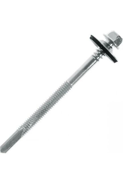 Стальные оцинкованные саморезы с шестигранной головкой и сверловидным наконечником, укомплектованные шайбой и резиновой прокладкой, для крепления фасадных слоистых плит к металлическим несущим конструкциям. Оцинкованный саморез 160 мм для быстрой и прочной фиксации сэндвич-панелей, устойчив к коррозии, подходит для металла и дерева, 500 шт.