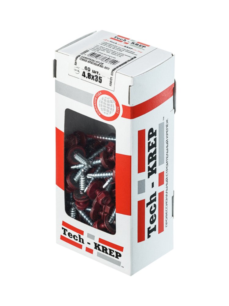 Саморез с кровельным сверлом предназначен для надежного крепления металлических и деревянных конструкций. Изготовлен из прочной стали с цинковым покрытием, что обеспечивает защиту от коррозии. Диаметр 4,8 мм и длина 35 мм позволяют использовать его для работы с материалами различной толщины. Цвет покрытия RAL-3011 (темно-красный) гармонично сочетается с кровельными материалами аналогичного оттенка, обеспечивая эстетичный вид. Шестигранная головка облегчает монтаж с помощью шуруповерта или гайковерта. Упаковка содержит 60 штук, что удобно для небольших и средних объемов работ. Коробка с окном от Tech-Krep позволяет легко оценить содержимое без вскрытия.
