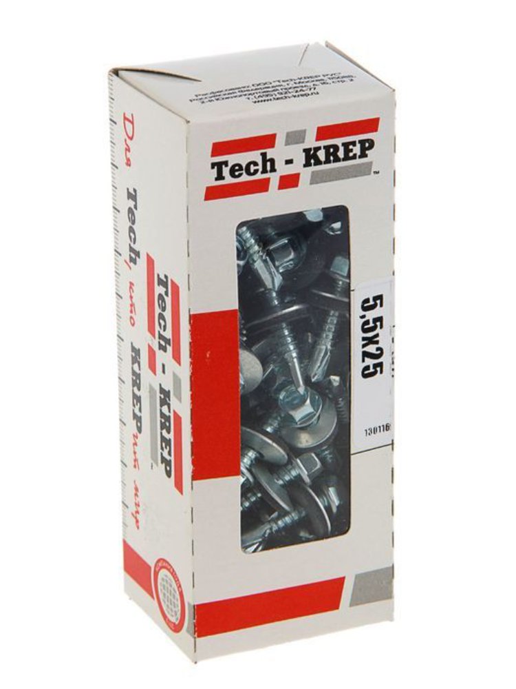 Саморезы КР ZP 5,5х25 мм, 60 шт в коробке с окном от Tech-Krep. Сталь с цинковым покрытием, для дерева и металла, надежное крепление.
