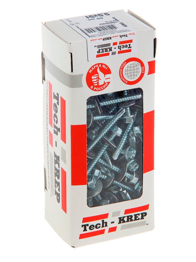 Саморез КР ZP 5,5х51 мм Tech-Krep (60 шт.) для металла и кровли. Сталь с цинковым покрытием, острый наконечник, прочная фиксация, коробка с окном.