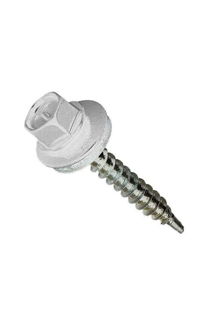 Кровельный саморез 4,8×35 мм, белый, с уплотнительной шайбой. Обеспечивает герметичность, прочность крепления и долговечность монтажа.