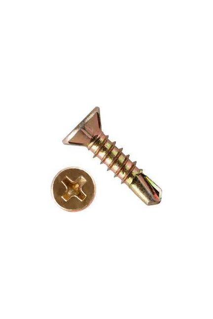 Стальные желтые саморезы со сверлом и насечками на конусной части головки для крепления металлического профиля в рамных пластиковых конструкциях , подходит для автоматической линии Крепкий саморез с буром для монтажа окон и профилей, желтое цинкование защищает от коррозии, не требует сверления, 15 000 шт. в упаковке.