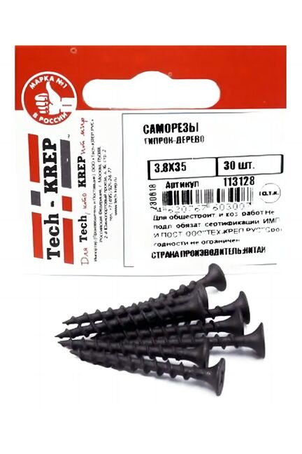 Саморез по дереву 3,8х35 (30 шт) - пакет Tech-Krep