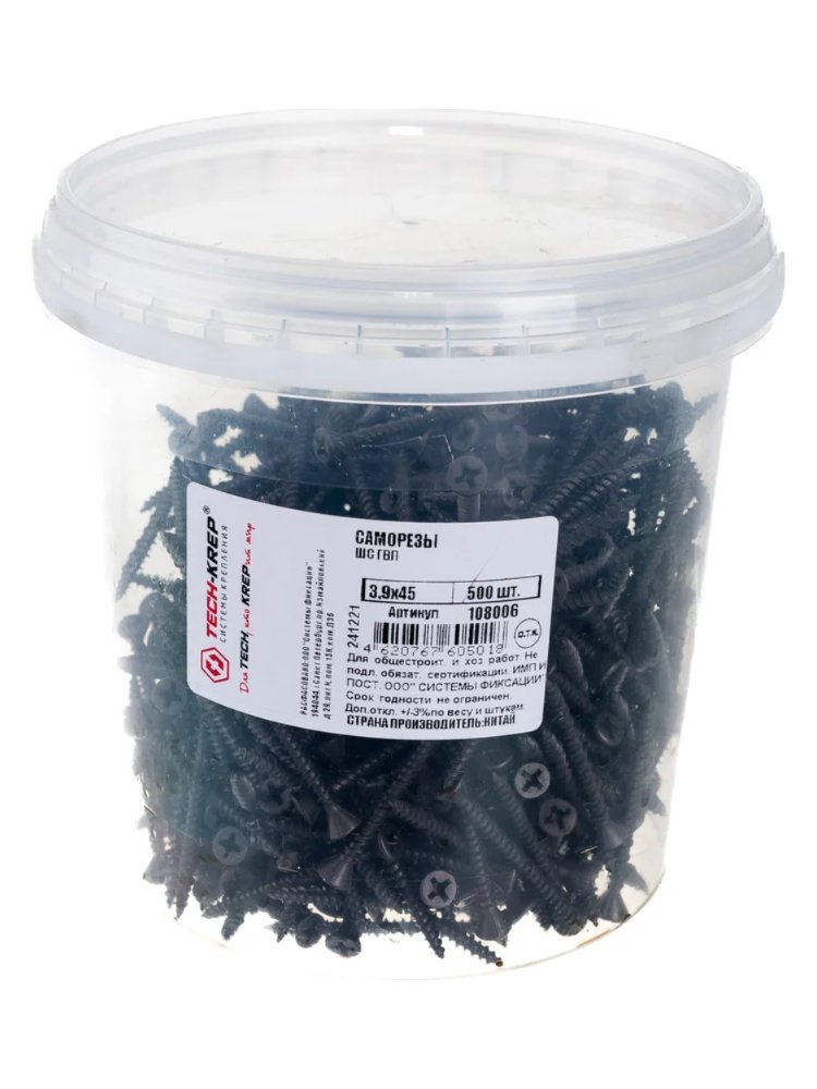 - Размер: 3,9х45 мм – универсален для стандартных ГВЛ и прочих листовых материалов