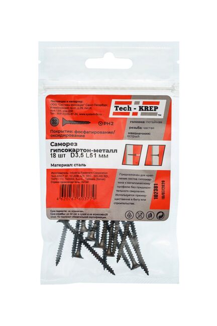 Саморез по металлу 3,5х51 (18 шт) - пакет Tech-Krep