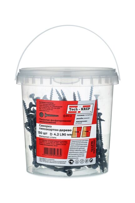 Надежные саморезы 4,2х90 мм Tech-Krep подходят для быстрой и прочной фиксации металлических конструкций в условиях интенсивных нагрузок. Идеально подходят для строительных и ремонтных работ: стационарного крепежа профиля, монтажа металлокаркасов, соединения листового металла толщиной до 2 мм. Прочная закаленная сталь с антикоррозийным цинковым покрытием гарантирует долгий срок службы даже во влажной среде.